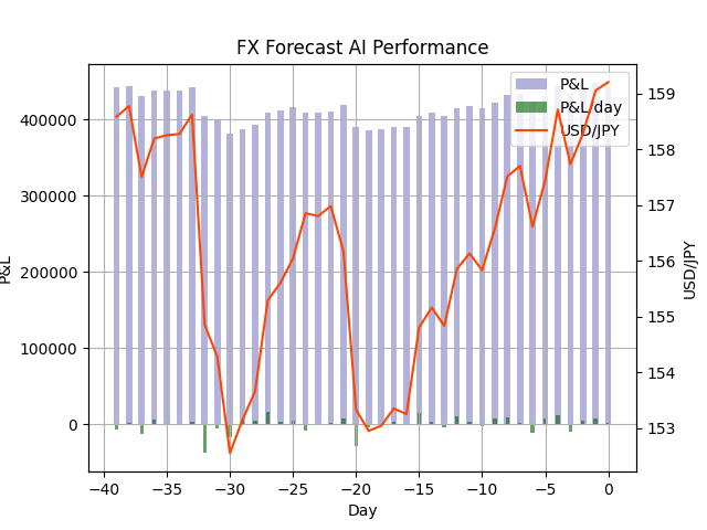 損益はFX予報によって次のとおり売買した際の金額です。売買は10,000通貨です。スプレッドは考慮せず、仲値での取引として扱っています。